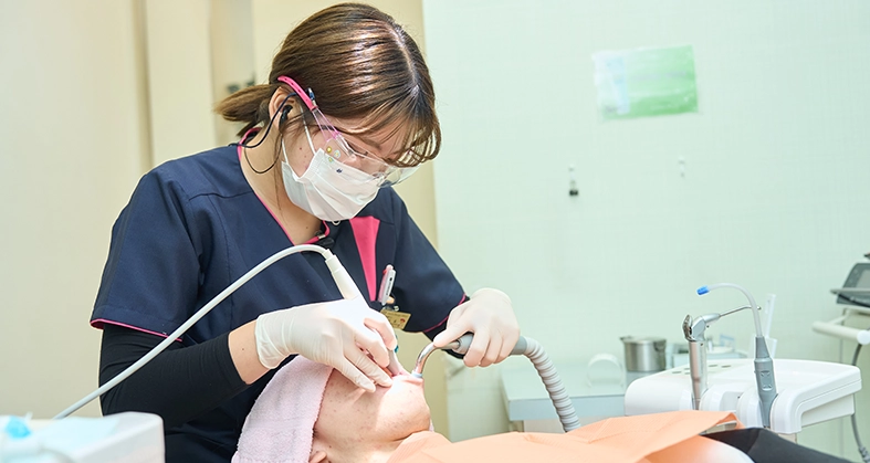 当院の特徴は何と言っても予防歯科に力を入れている事です。歯科医院の本来の役割は「痛くなったら通う場所」ではなく「痛くなる前に、健康であるうちに通い続ける場所」である筈です。当院に通う患者様には「ずっとずっと長くご自分の歯で生活していってほしい!」という強い思いがあります。口腔内写真などの資料管理を行い、患者様の健康のサポーターになりたいと思っています。また、「歯科衛生士担当制」を採用しており、一度担当させて頂いた患者様は、責任を持って定期検診までサポートさせて頂きます。更に当院では衛生士専用ユニットがありますので、その空間の中で、歯のクリーニングやホワイトニングをしております。